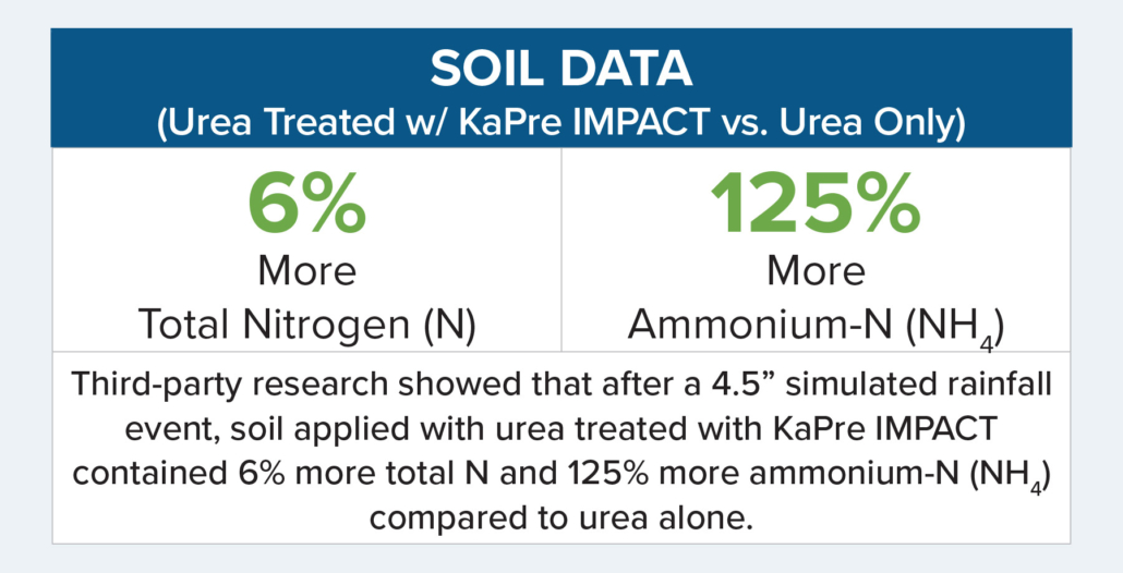Soil treated with KaPre® IMPACT has 11.8% more plant-available phosphorus and 13% more plant-available potassium.